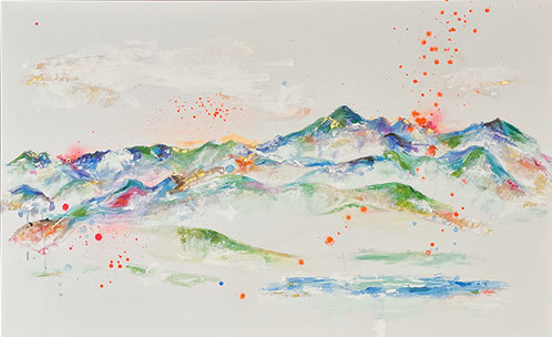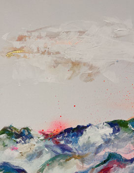 Pigment, Biofarbe, Acryl, Neonspray, Blattgold und Bleistift