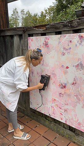 Pigment, Biofarbe, Acryl, Bleistift, Schleifmaschine auf ungrundierter Baumwolle