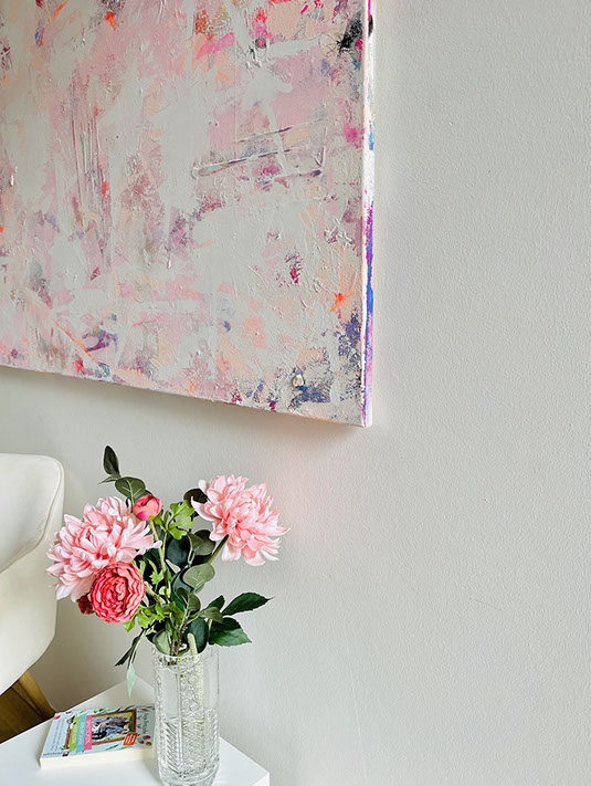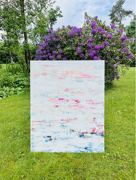 Die Bilder aus der Reihe FLOW und DIAMOND sind auf naturbelassener Baumwolle gemalt – mit Pigment und wenig Binder.