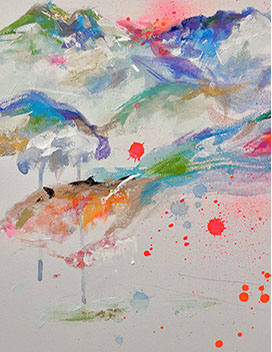 Pigment, Biofarbe, Acryl, Neonspray, Blattgold und Bleistift